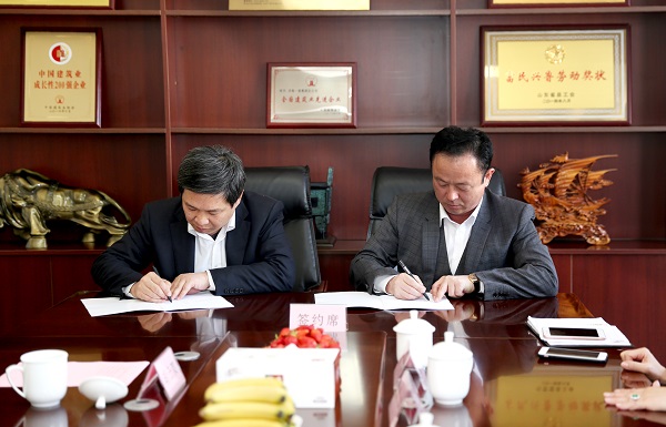 我公司黨委書記、董事長、總經(jīng)理孫光文與山東三發(fā)集團董事長張家發(fā)共同簽署《戰(zhàn)略合作協(xié)議》,同時就下一步合作進行了廣泛深入的交流。我公司常務副總經(jīng)理、總經(jīng)濟師胡云雙、副總經(jīng)理欒兆杰、辦公室主任楊興建、直屬項目公司經(jīng)理徐懷忠及山東三發(fā)集團常務副總肖玲、工程副總徐德順、成本副總高華、行政副總李世寶等雙方領(lǐng)導出席簽約儀式。